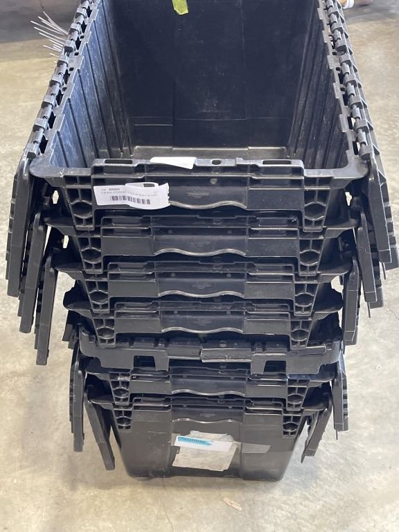 7 BLACK STORAGE TOTES W/ BUILT IN LIDS - SOME MISSING
