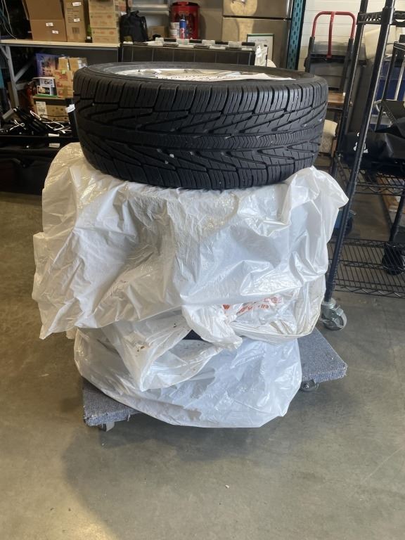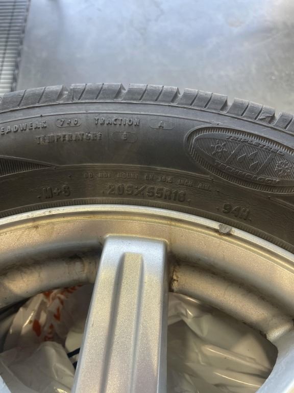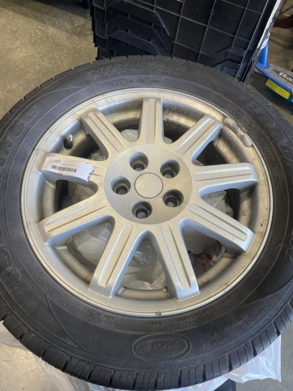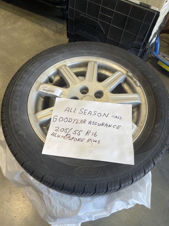 Lot 281 4 GOODYEAR ASSURANCE 205 /55 R16 ALL SEASON TIRES 5 SPOKE ALUMINUM RIMS 65% TREAD LEFT