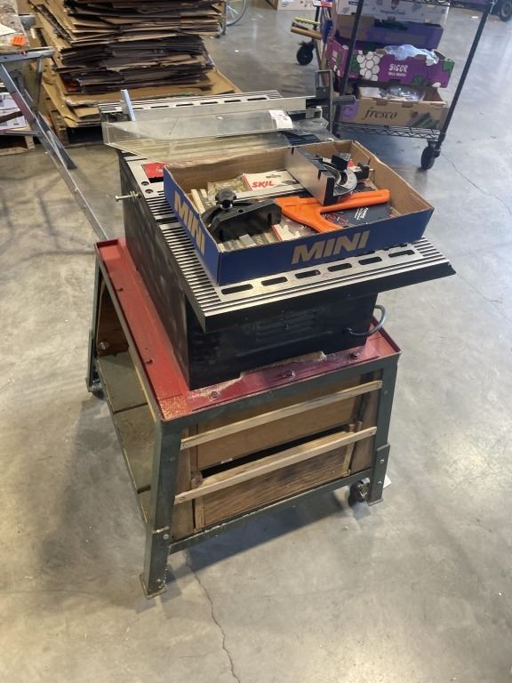 QUALITY CRAFT 10 INCH TABLE SAW WITH ACCESSORIES AND ROLLING STAND