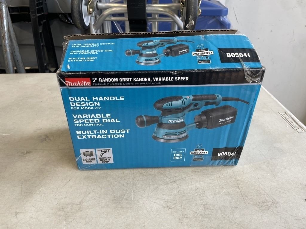 Lot 340 AS NEW MAKITA 5" RANDOM ORBIT SANDER VARIABLE SPEED