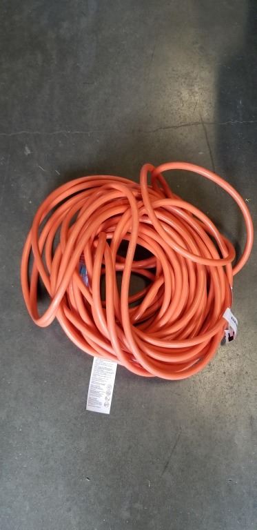 AS NEW 100FT INDOOR OUTDOOR HEAVY DUTY LIGHTED 3 WIRE GROUNDED EXTENSION CORD,ORANGE, 10AWG
