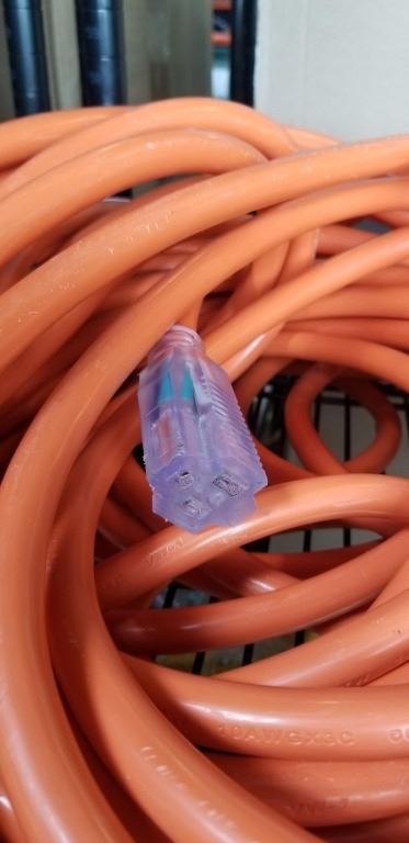 Lot 352 AS NEW 100FT INDOOR OUTDOOR HEAVY DUTY LIGHTED 3 WIRE GROUNDED EXTENSION CORD,ORANGE, 10AWG