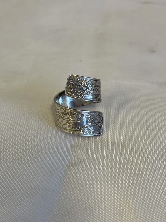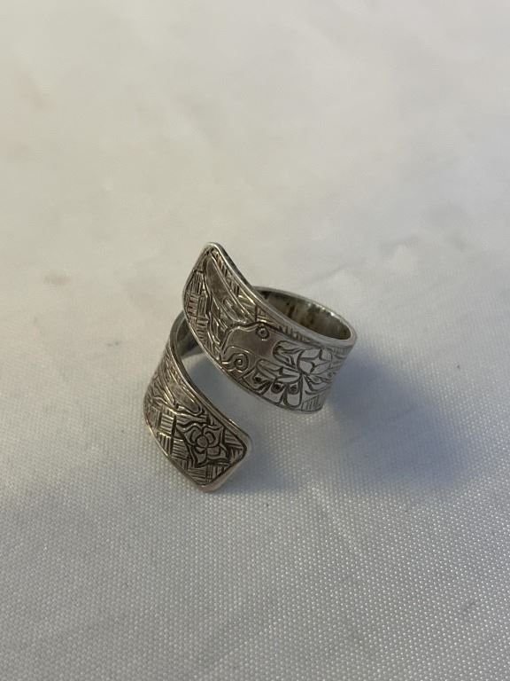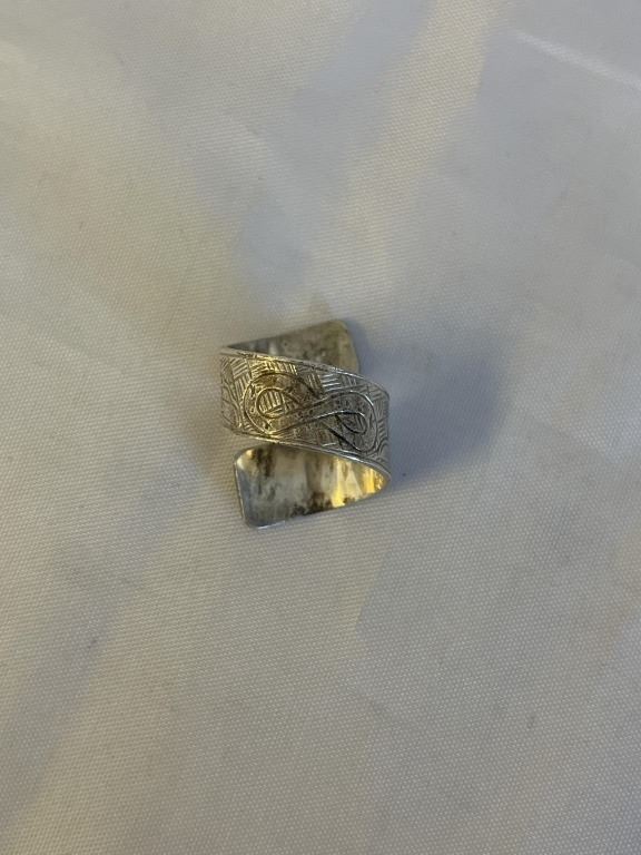 Lot 379 FIRST NATION NORTH WEST HAIDA STERLING SILVER WRAP RING HAND CRAFTED AND SIGNED QS