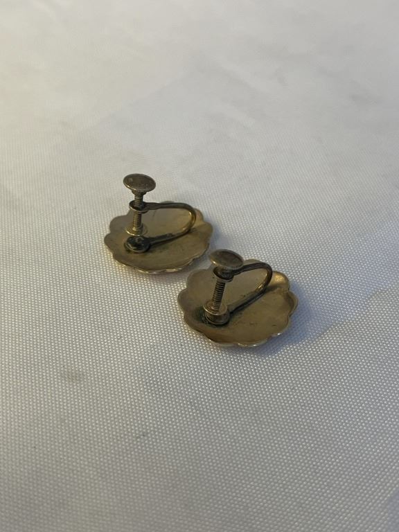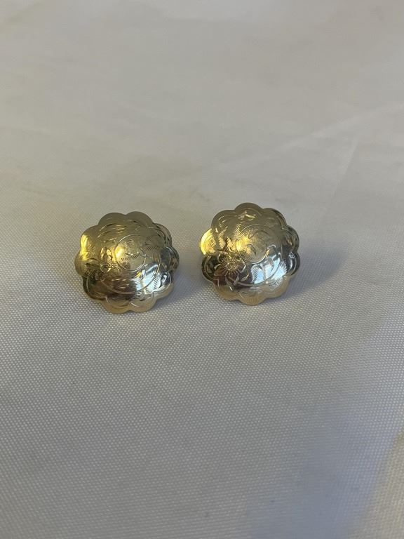 VINTAGE STERLING SILVER HAND ENGRAVED DESIGN SCREW ON EARRINGS