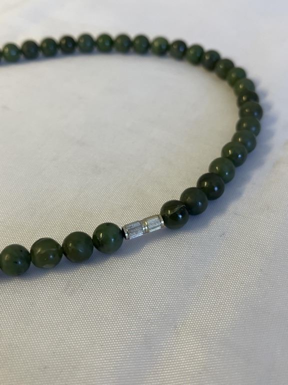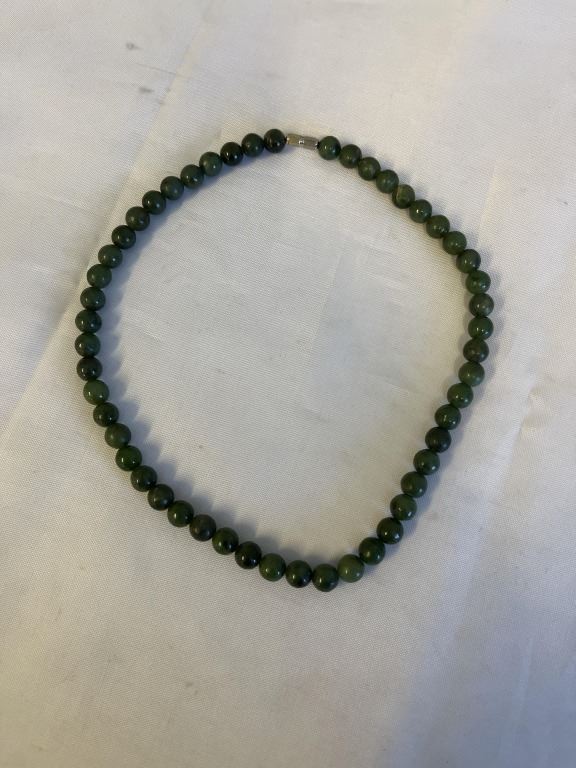 Lot 392 VINTAGE GREEN BC JADE BEADS NECKLACE