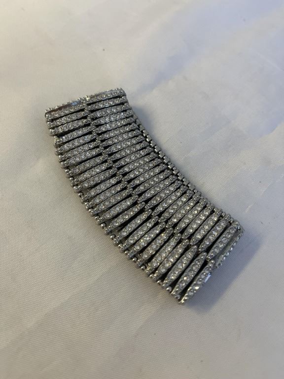 Lot 399 VINTAGE HEAVY SILVER TONE W/ RHINESTONES STRETCH BRACELET