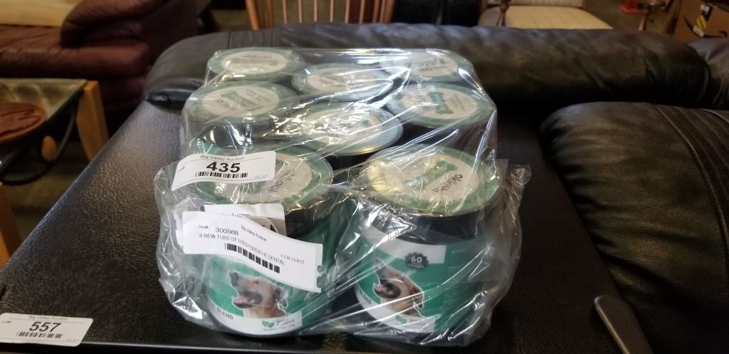 Lot 435 8 NEW TUBS OF FRESH BREATHE DENTAL POWDER WITH HERBAL BLEND PROBIOTIC FOR DOGS, 200GRAM TUBS