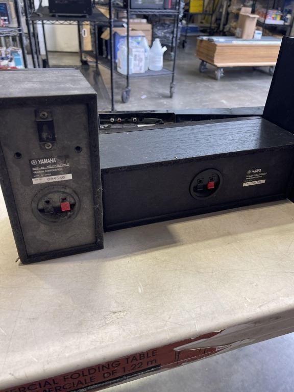 Lot 445 VIZIO SOUND BAR AND 4 YAMAHA SPEAKERS. NO POWER CORD. UNTESTED