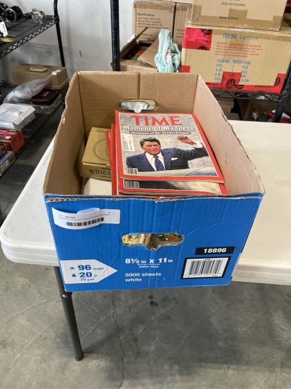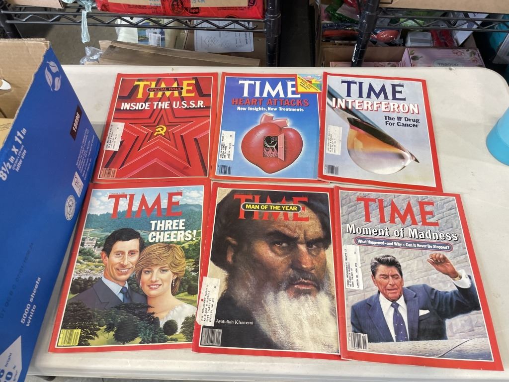 ASSORTED COLLECTIBLE ANTIQUE CHINA AND GLASS ITEMS AND TIME MAGAZINES