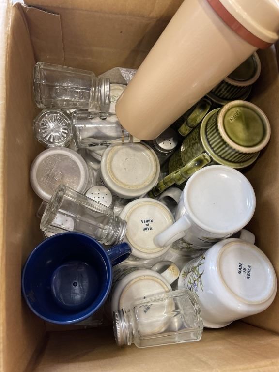 Lot 452 3 BOXES OF VINTAGE CRYSTAL, CHINA, COFFFEE THERMOS, ETC