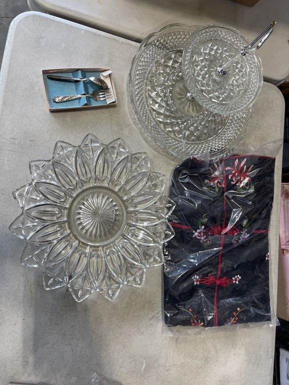 3 BOXES OF VINTAGE CRYSTAL, CHINA, COFFFEE THERMOS, ETC