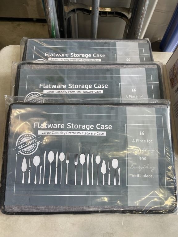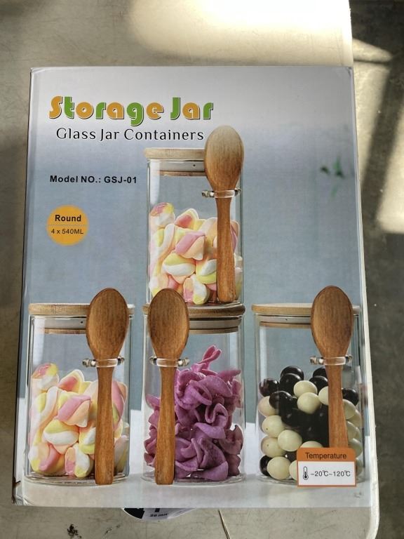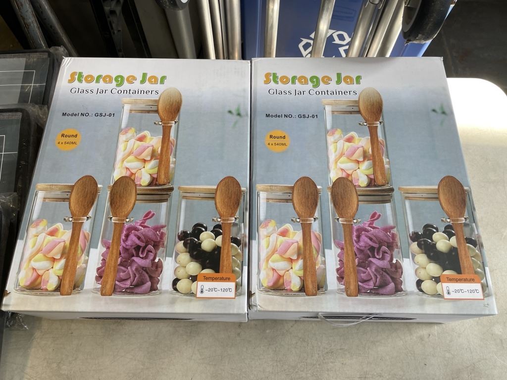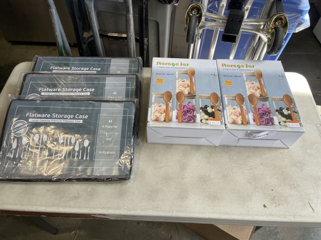 2 NEW 4PC GLASS JAR STORAGE SETS AND 3 NEW FLATWARE STORAGE CASES
