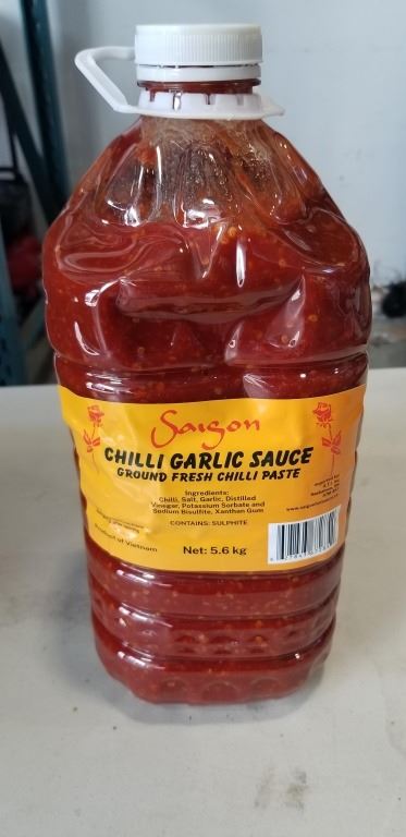 NEW CASE OF SAIGON CHILI GARLIC SAUCE, 3 5.6KG TUBS