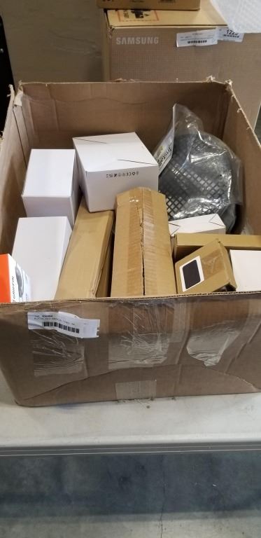 Lot 471 BOX OF NEW AMAZON ITEMS - INK CARTRIDGES, CAR ADAPTERS, SPEAKER GRILL, ETC