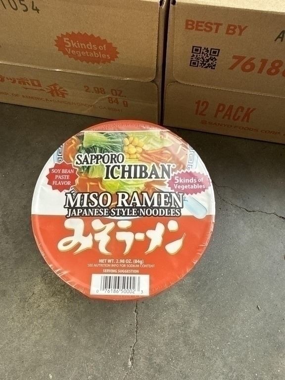 3 NEW CASES OF SAPPORO ICHIBAN MISO RAMEN JAPANESE STYLE NOODLE BOWLS, 12 PER BOX, 36 TOTAL BB. APRIL 28.2026