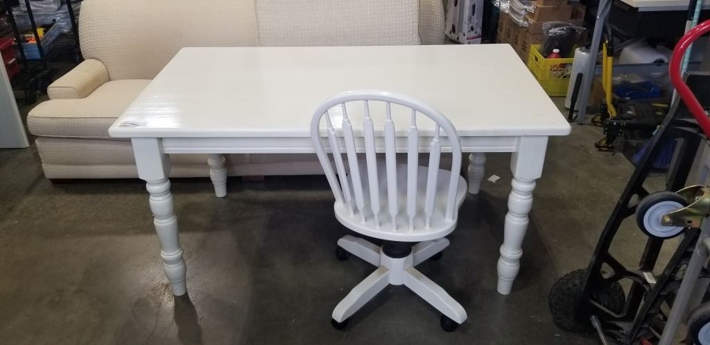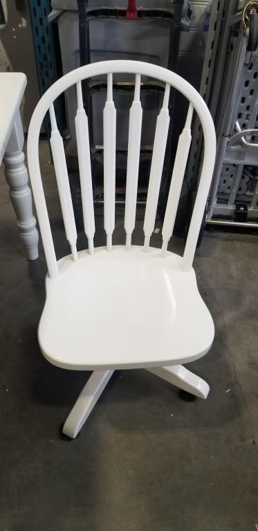 SOLID WOOD WHITE TABLE AND ROLLING CHAIR