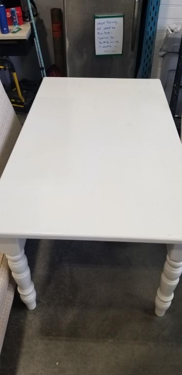 Lot 538 SOLID WOOD WHITE TABLE AND ROLLING CHAIR