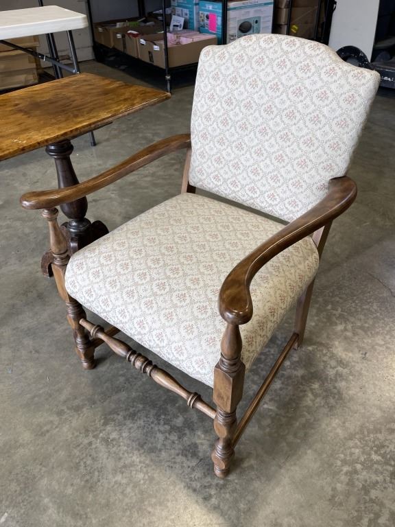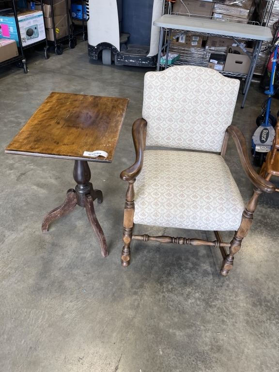 ANTIQUE CHAIR W/ SIDE TABLE