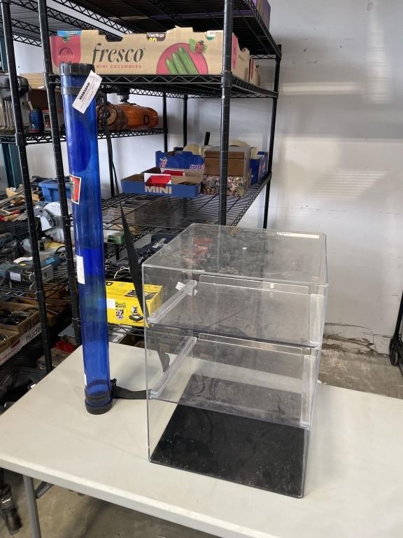 ACRYLIC THREE-TIER DISPLAY CASE AND ACRYLIC TUBE WITH STRAP