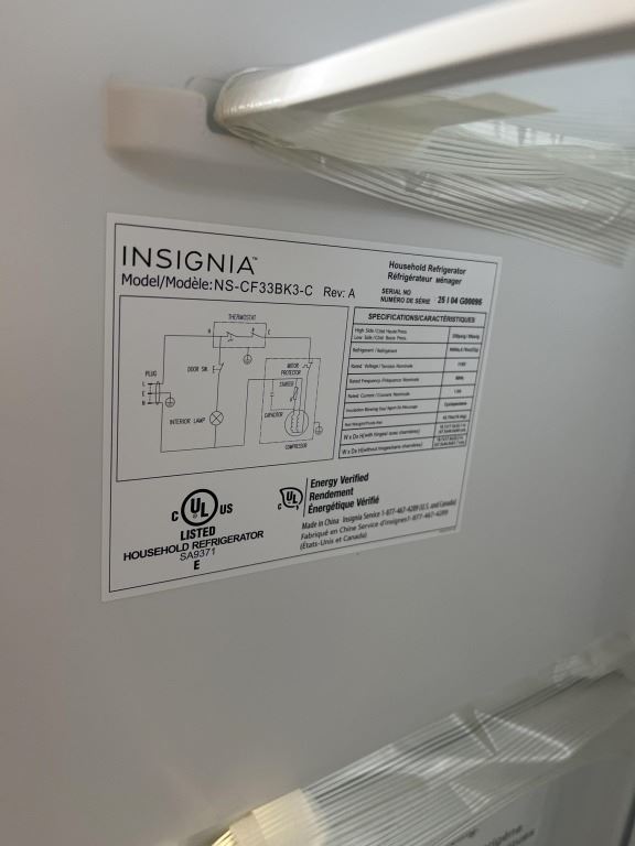 INSIGNIA 3.3 CU FT FREESTANDING BAR FRIDGE - TESTED WORKING, RETAIL $209