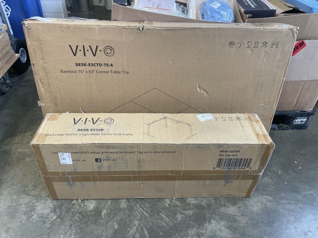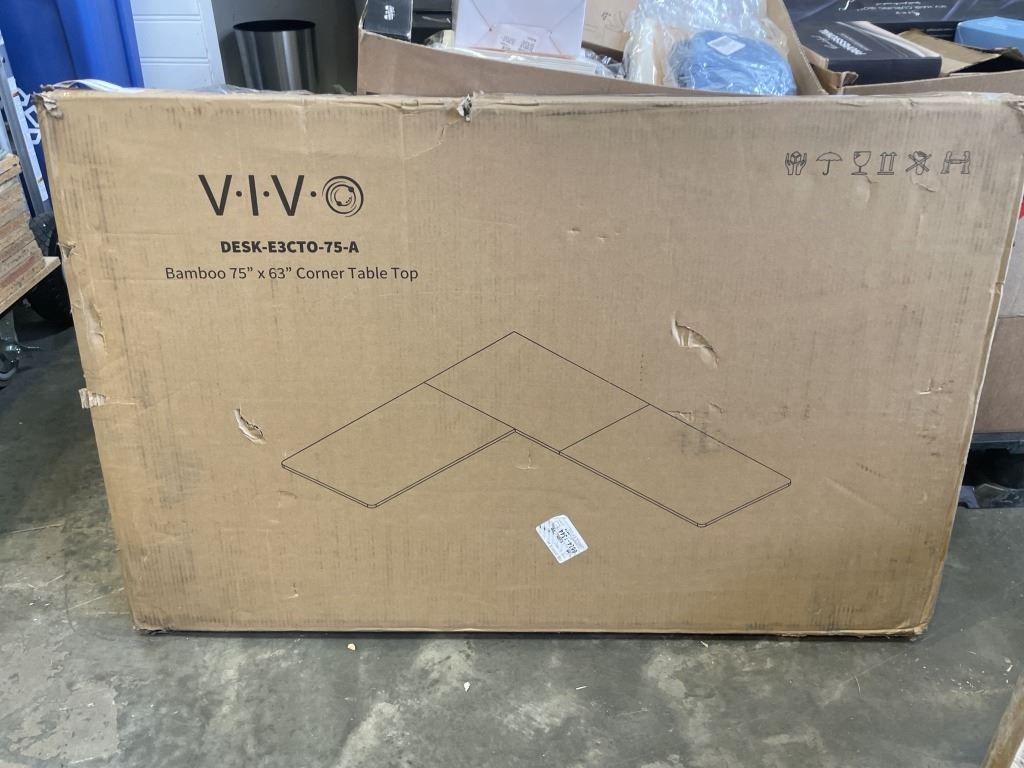 Lot 567 VIVO BAMBOO 75X63 INCH CORNER ELECTRIC SIT TO STAND DESK WITH BLACK LARGE ELECTRIC SINGLE MOTOR CORN