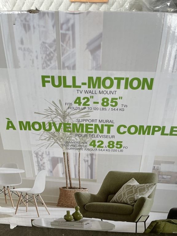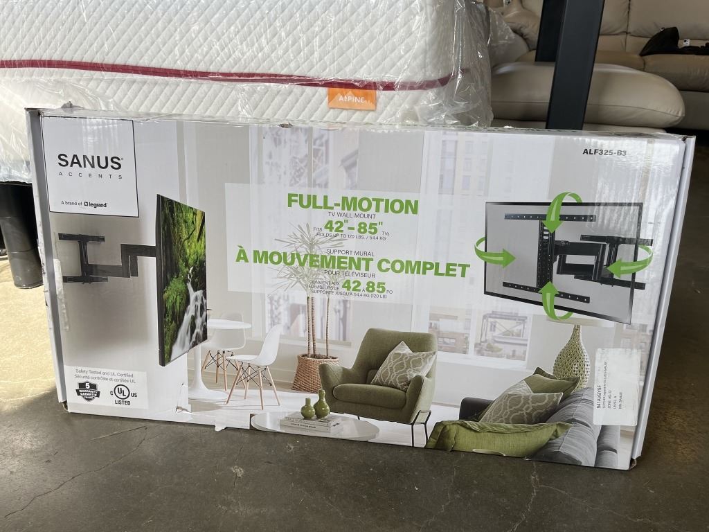 Lot 570 SANUS ACCENTS 42"-85" FULL MOTION TV WALL MOUNT, RETAIL $249