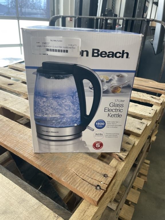 Lot 575 HAMILTON BEACH 1.7L ELECTRIC GLASS KETTLE - TESTED WORKING