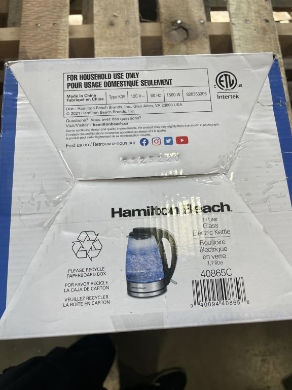 HAMILTON BEACH 1.7L ELECTRIC GLASS KETTLE - TESTED WORKING