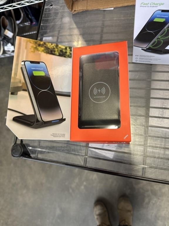 Lot 600 2 NEW HYPERGEAR FAST CHARGE WIRELESS CHARGERS, WORKS IN PORTRAIT OR LANDSCAPE, CASE COMPATIBLE, INCL
