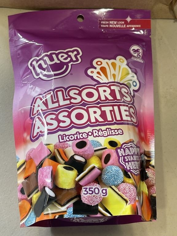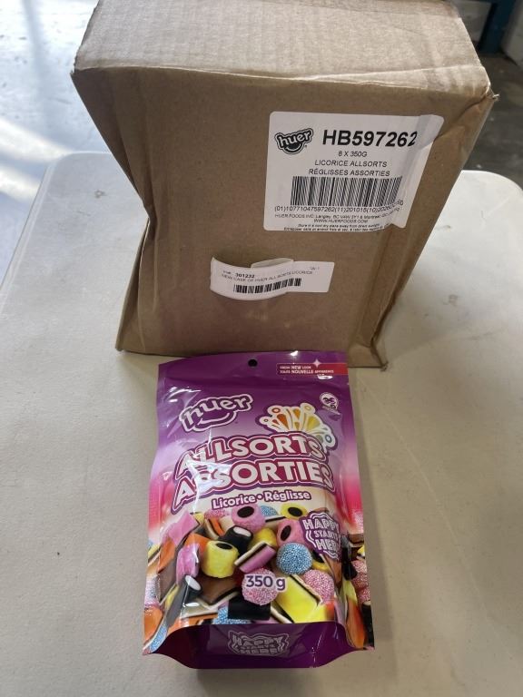 Lot 611 NEW CASE OF HUER ALL SORTS LICORICE CANDY, 6 350G BAGS, BB 2026/OC/15