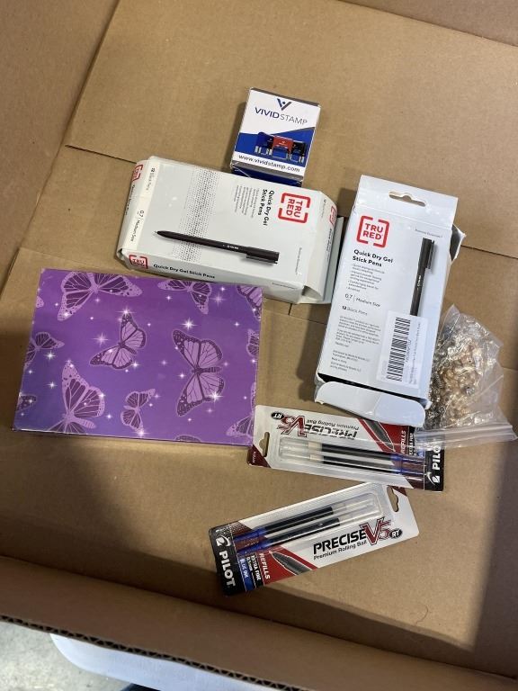 ASSORTED NEW OVERSOTCK PAPER AND OFFICE SUPPLY INLCUDING NOTEBOOKS AND PENS ETC