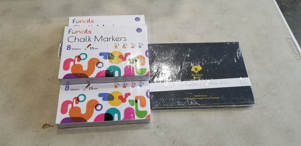 Lot 629 NEW WATER COLOUR HOT PRESS AND 3 NEW CHALK MARKER 8 MARKERS PER BOX