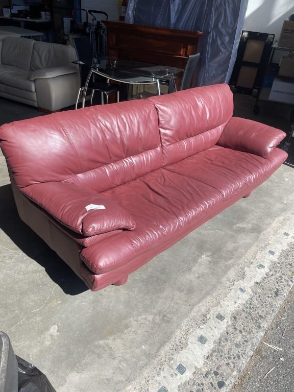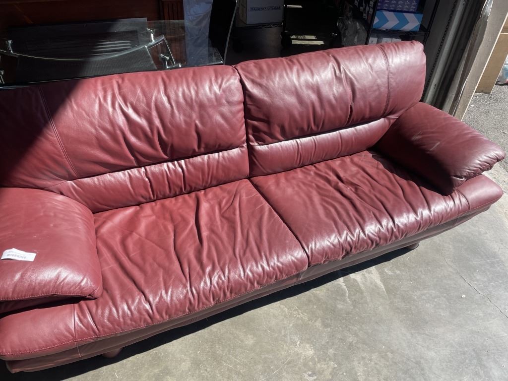 BURGUNDY LEATHER SOFA, GOOD CONDITION