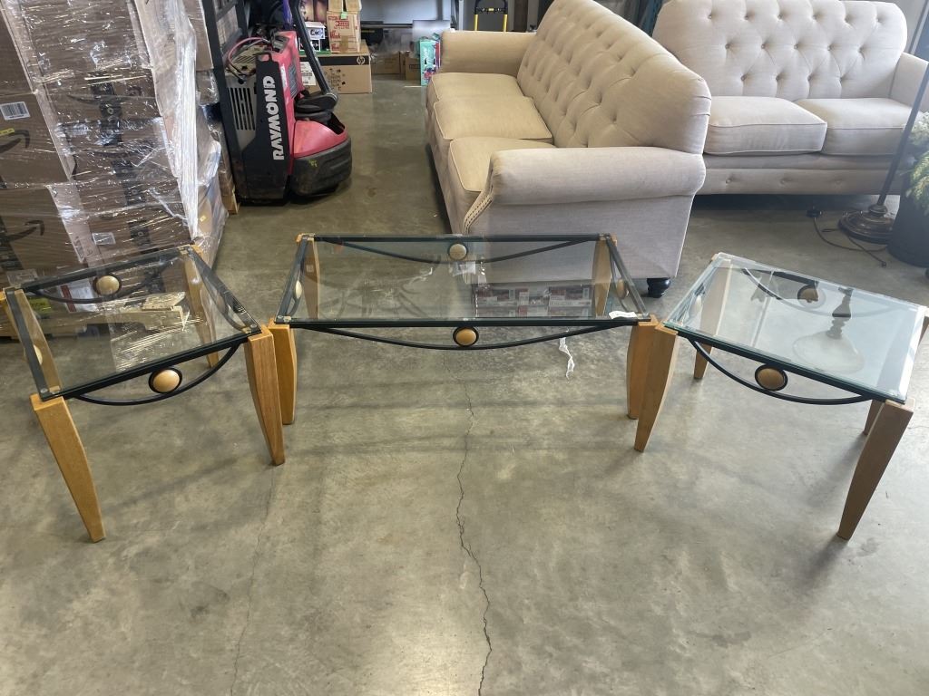 Lot 673 3PC GLASS TOP COFFEE AND ENDTABLE SET