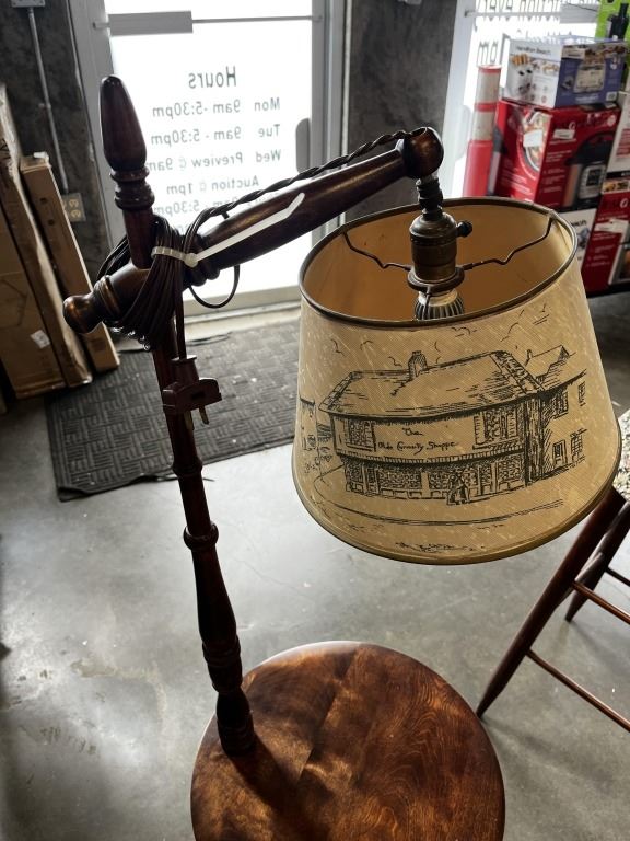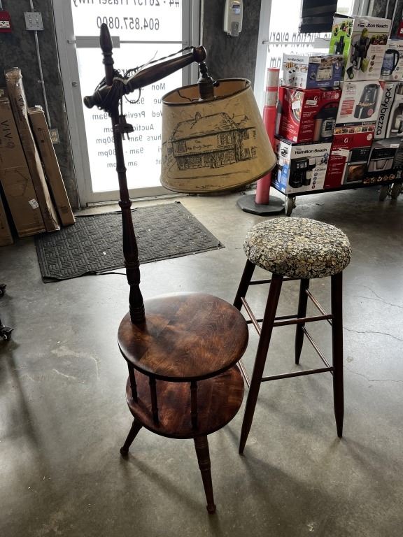 Lot 692 ANTIQUE FLOOR LAMP AND STOOL