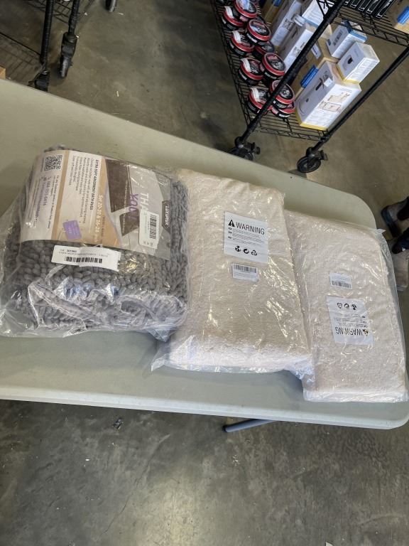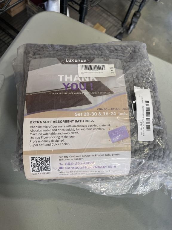Lot 735 4 NEW MICROFIBER BATH MATS - 2 BEIGE 32x20IN AND 2PK GREY50x80CM AND 40x60CM