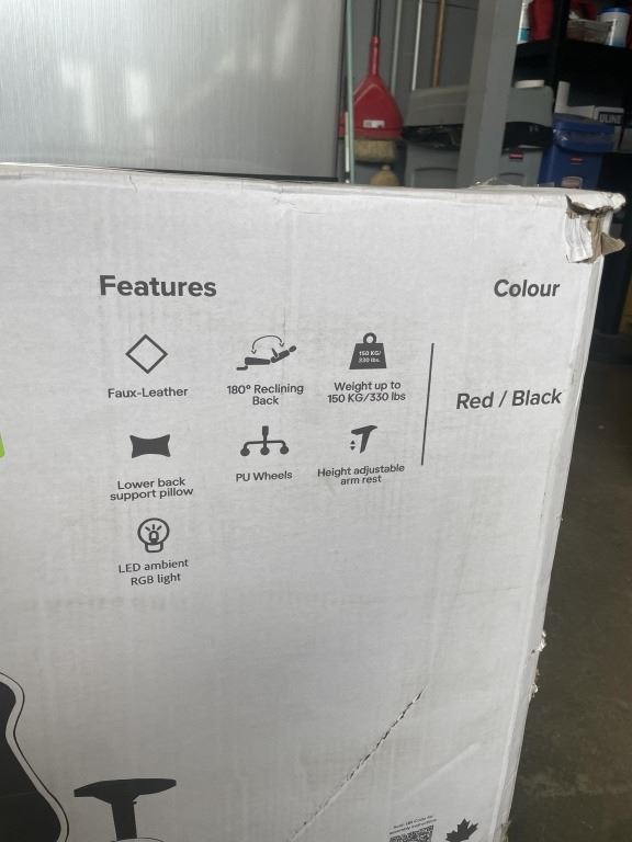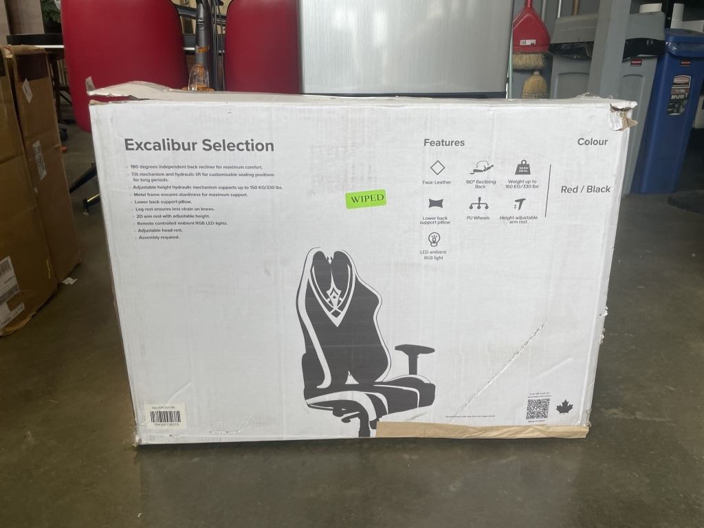 NAZ EXCALIBUR ERGONOMIC HIGH BACK FAUX LEATHER GAMING CHAIR W/ RGB LED LIGHTS, RETAIL $499