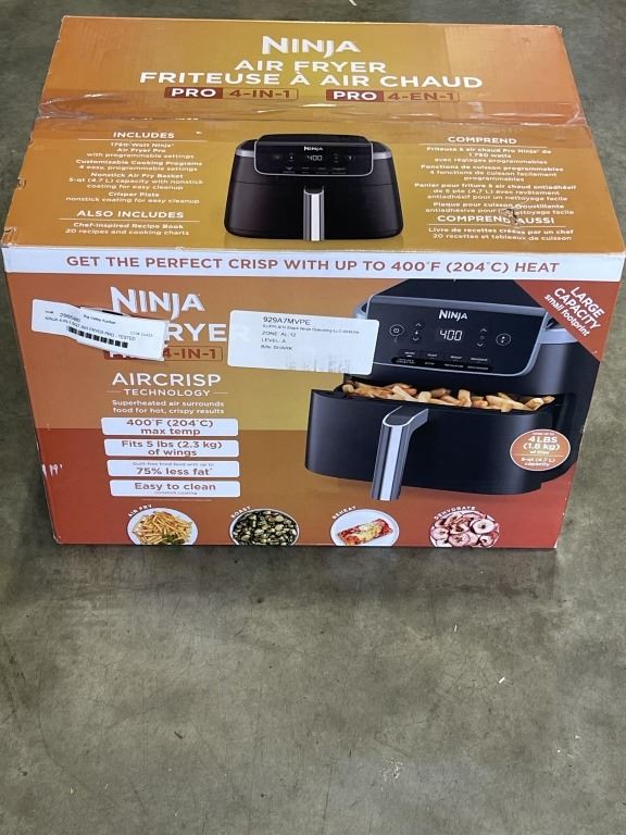 Lot 845 NINJA 4-IN-1 5QT AIR FRYER PRO - TESTED WORKING, RETAIL $179