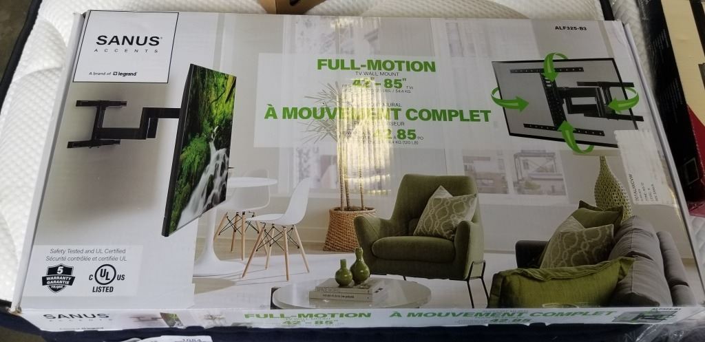 Lot 851 SANUS ACCENTS 32"-85" EXTENDABLE TILTING TV WALL MOUNT, RETAIL $119