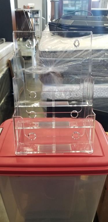 Lot 880 3 OFFICE BROPCHURE DISPLAY HOLDERS AND NEW 3 PC STORAGE BIN COMBO