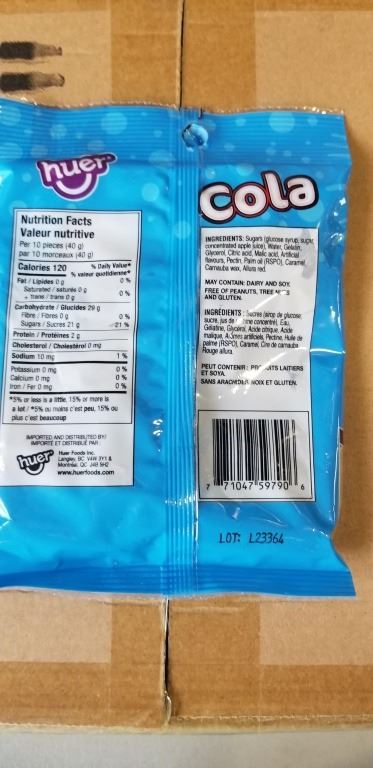 Lot 889 CASE OF HUER COLA GUMMIES, 24 X 120G