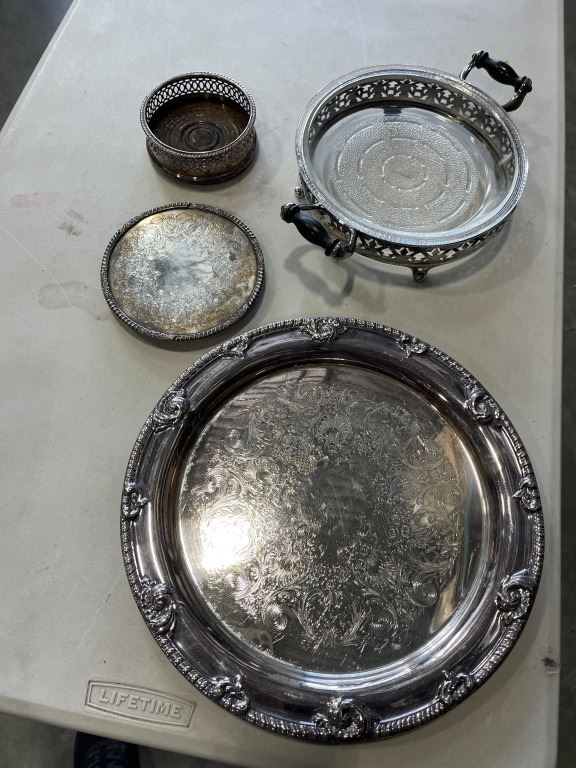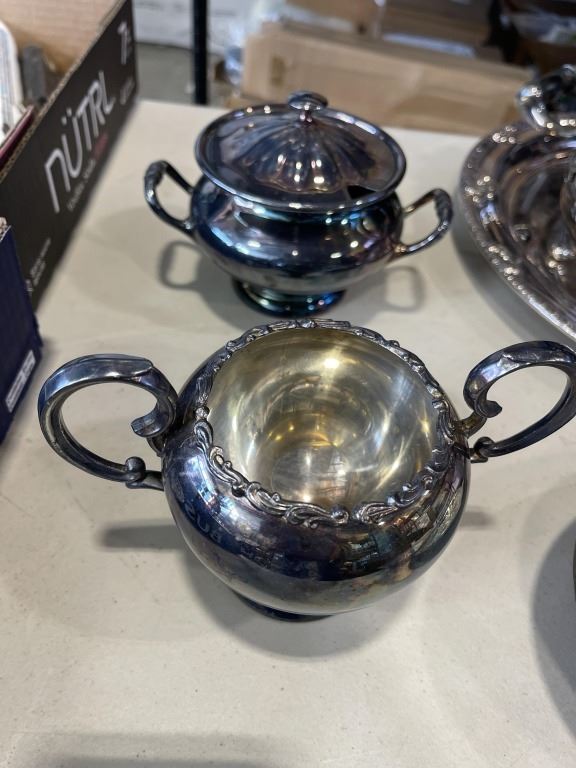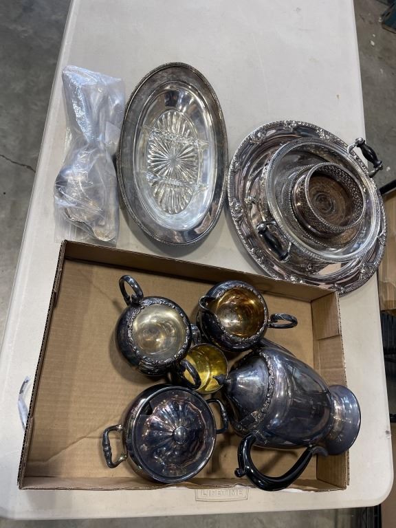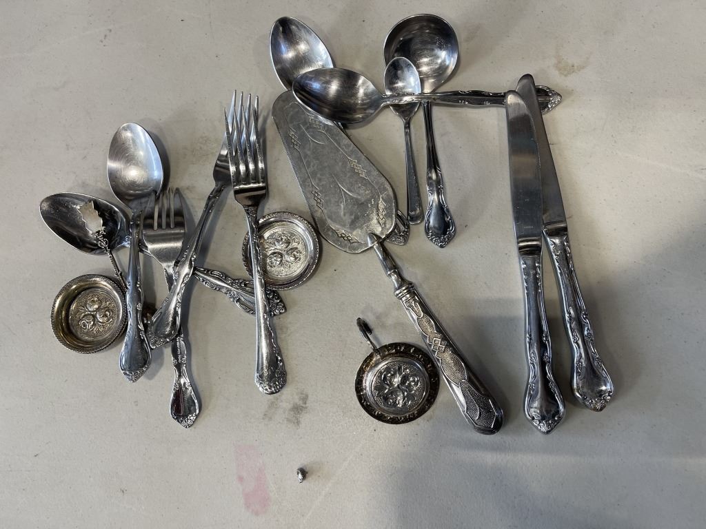 COLLECTION OF ANTIQUE SILVER PLATE SERVING ITEMS