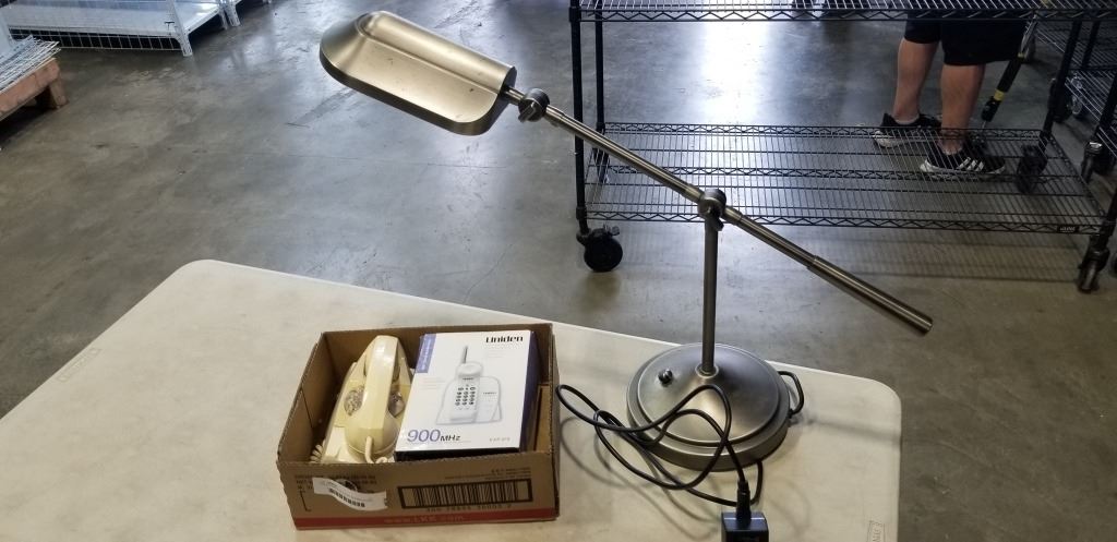 Lot 899 GTE AUTOMATIC ELECTRIC ROTARY PHONE AND UNIDEN HOME PHONE AND BRASS STUDY LIGHT