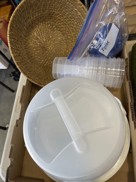 Lot 904 3 THROW BLANKETS AND TRAY OF FOOD PREP CONTAINERS AND BOWLS