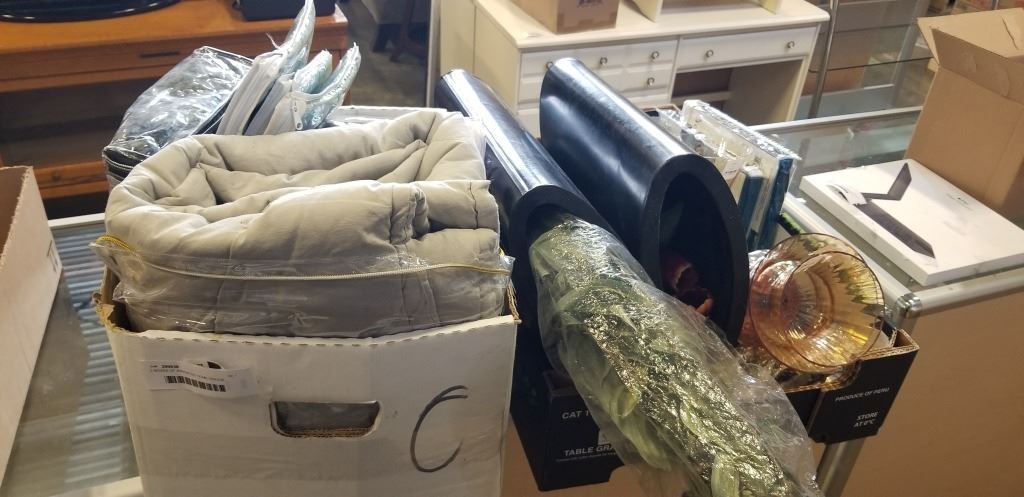 Lot 909 2 BOXES OF ASSORTED HOME GOODS, OFFICE SUPPLIES, ETC