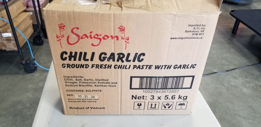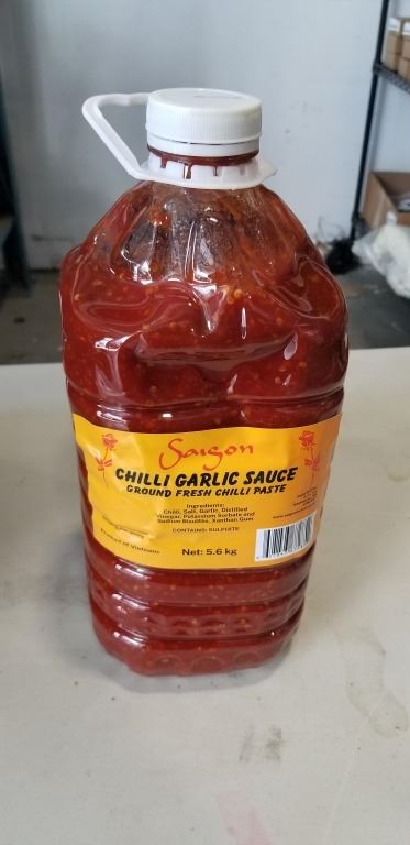 Lot 910 NEW CASE OF SAIGON CHILI GARLIC SAUCE, 3 5.6KG TUBS