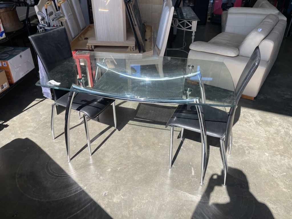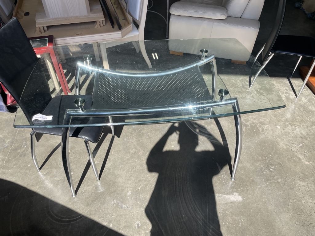 3 PC MODERN GLASS AND CHROME DINNETTE SET