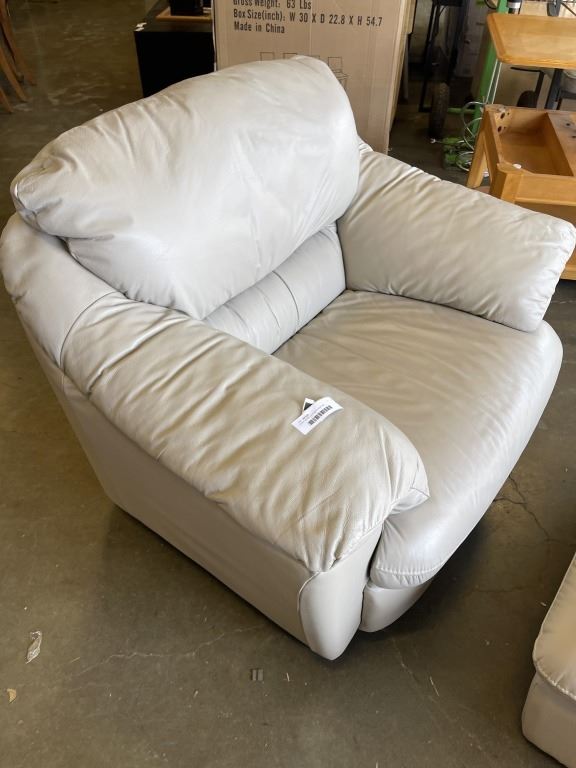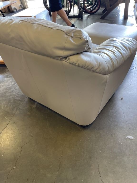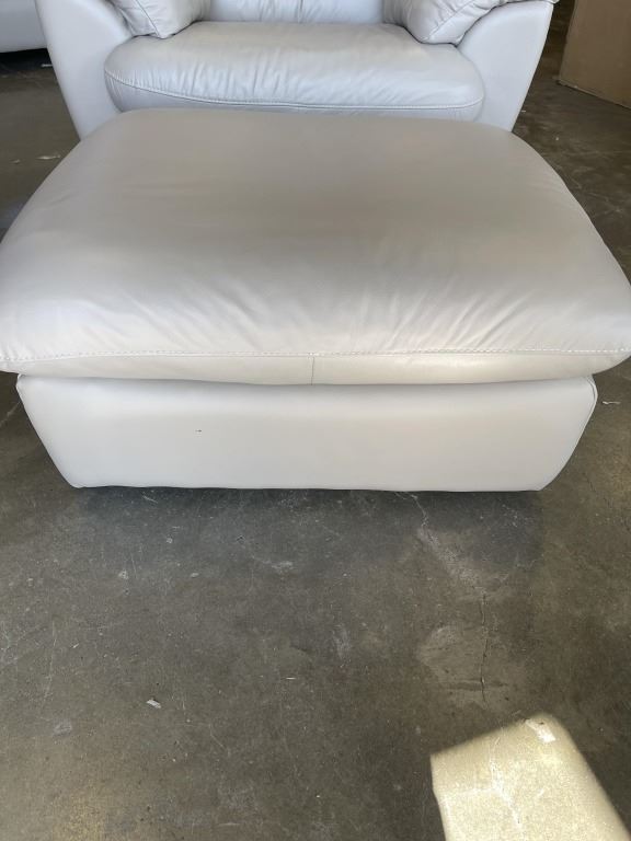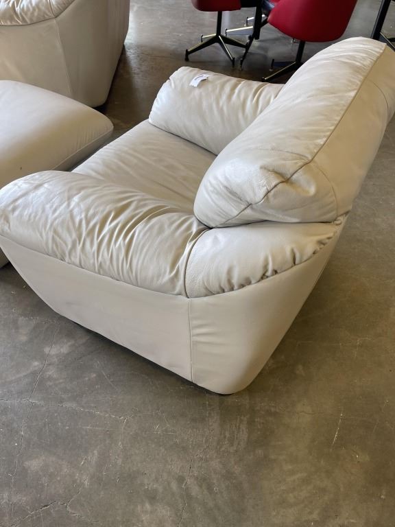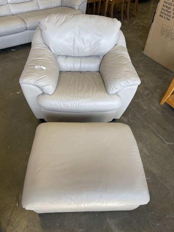 LIGHT BEIGE LEATHER CHAIR AND OTTOMAN