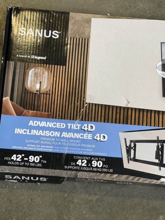 Lot 986 SANUS ADVANCED 42-90" TILTING TV WALL MOUNT, RETAIL $229