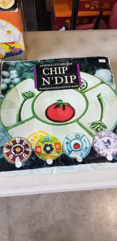 2 CHIP AND DIP SERCING TRAYS AND 4PC LIDDED CANNISTER SET